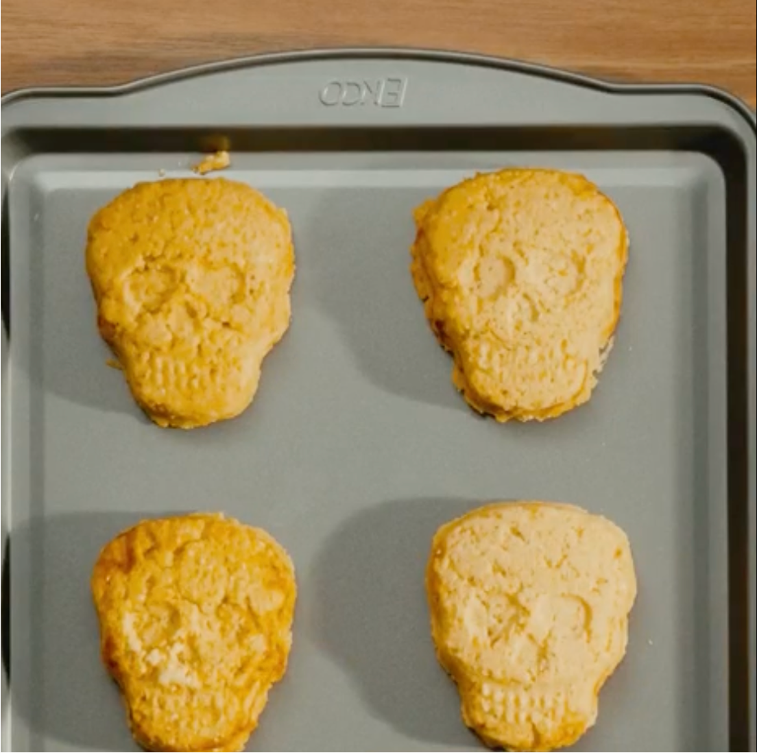 In another bowl mix the cornmeal, baking powder, and salt. Gradually add the lard and chicken broth until you get a soft dough. Stir in the crushed Cheetos® Torciditos and mix until evenly combined.