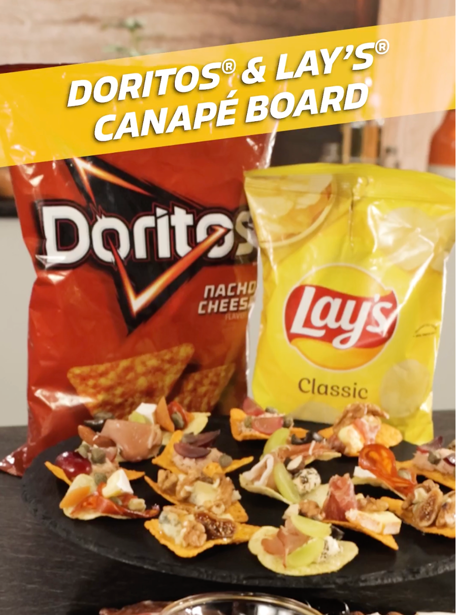 The chips can be used as a pastry item to make small canapes or even eaten separately with the bowl's ingredients. At the end of the video, we can show examples of assembling the chip canapes as inspiration. For example, we put some ham on a Lay’s chip with some fruit, drizzle some honey, and a Dorito with a piece of cheese, fruit, and nuts. The idea is people can build their perfect Doritos and Lay’s canapes that’s to their taste.