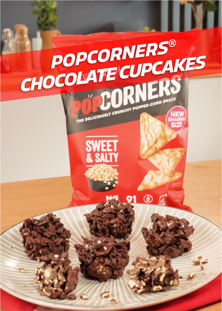 - Crush the Sweet & Salty PopCorners gently into small pieces, and mix with the melted chocolate.